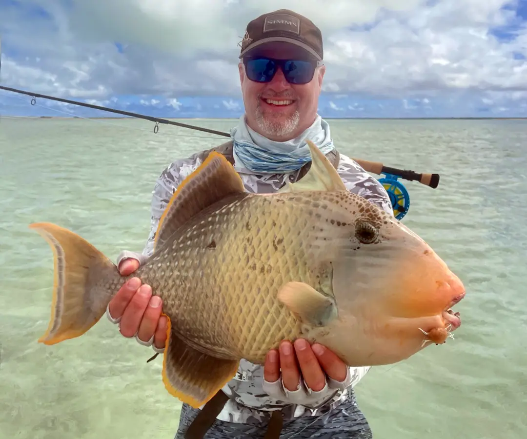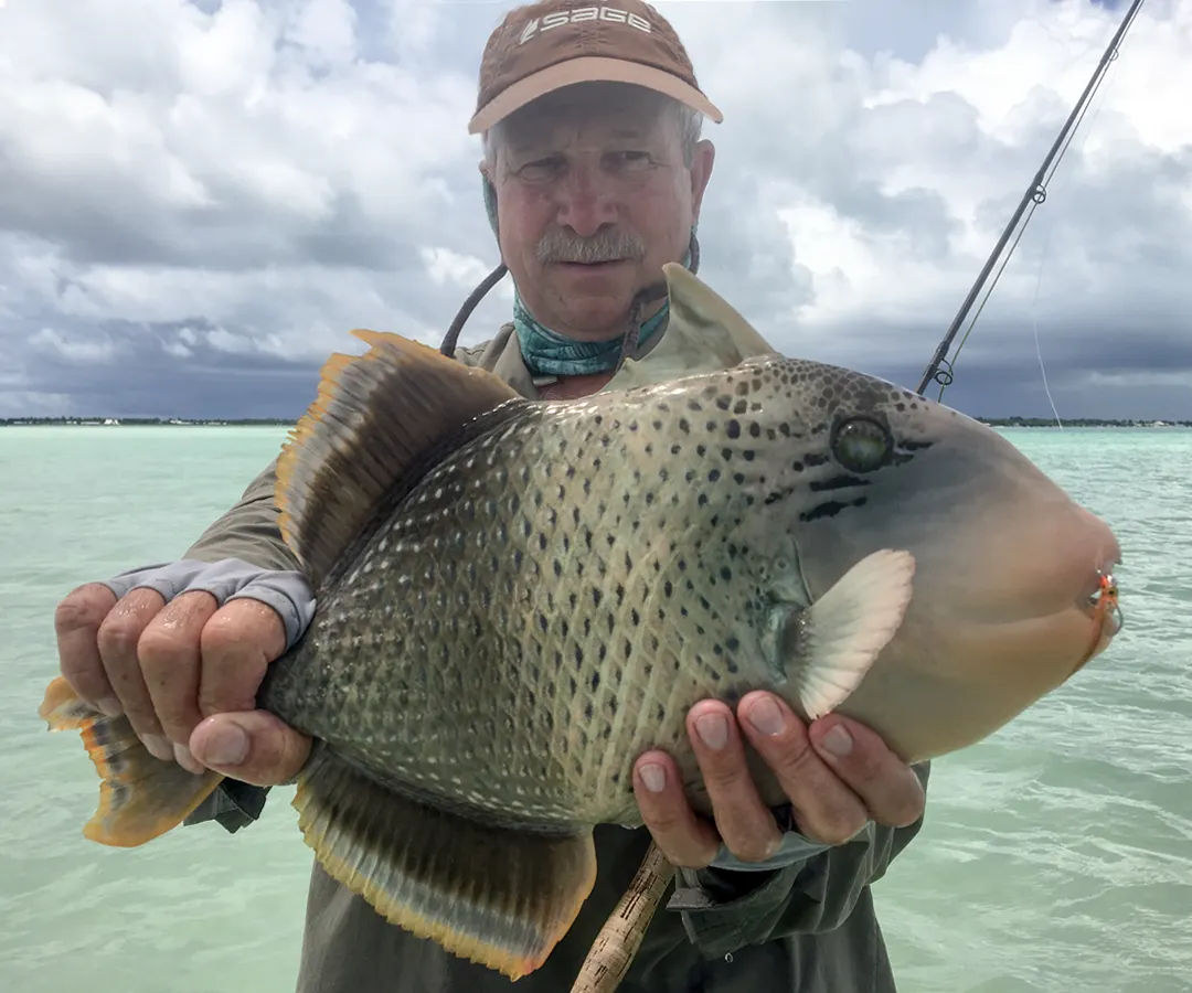 The ideal cast is about five feet beyond and five feet in front of the trigger. Make sure the current and wind will push your fly towards your target. Usually, you'll want to take short, hard strips of just a few inches to avoid spooking them. If you are lucky enough to hook a triggerfish without its teeth destroying the hook or tippet, then hang on as the fun begins!
