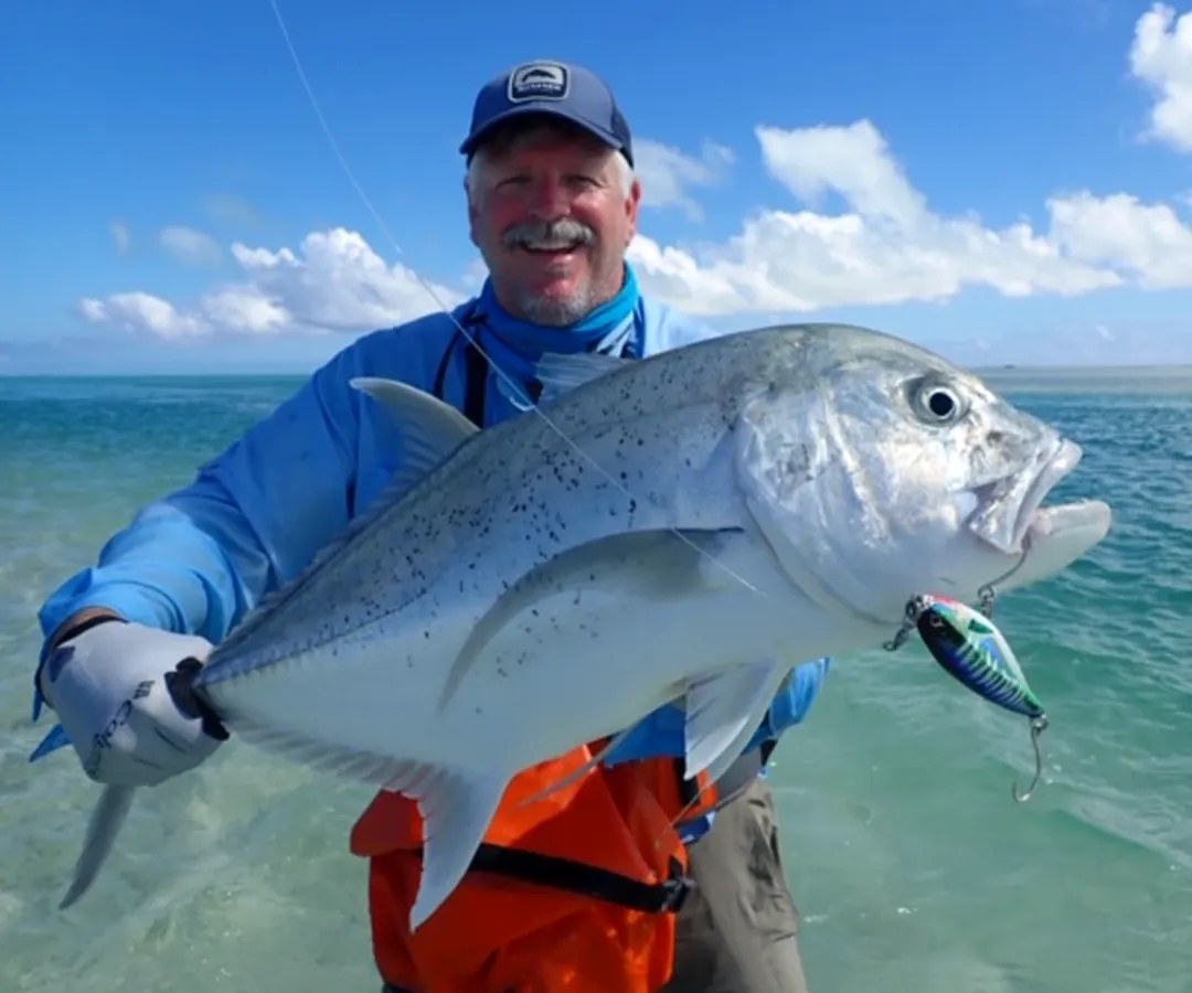 A 10 to 12-weight with a floating line is ideal for trevally on the flats. Just offshore and around the coral heads, you might consider a 12-weight or 14-weight outfit for giant trevally with sinking lines or 24 to 30-foot sinking shooting heads.
